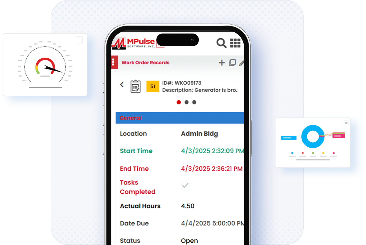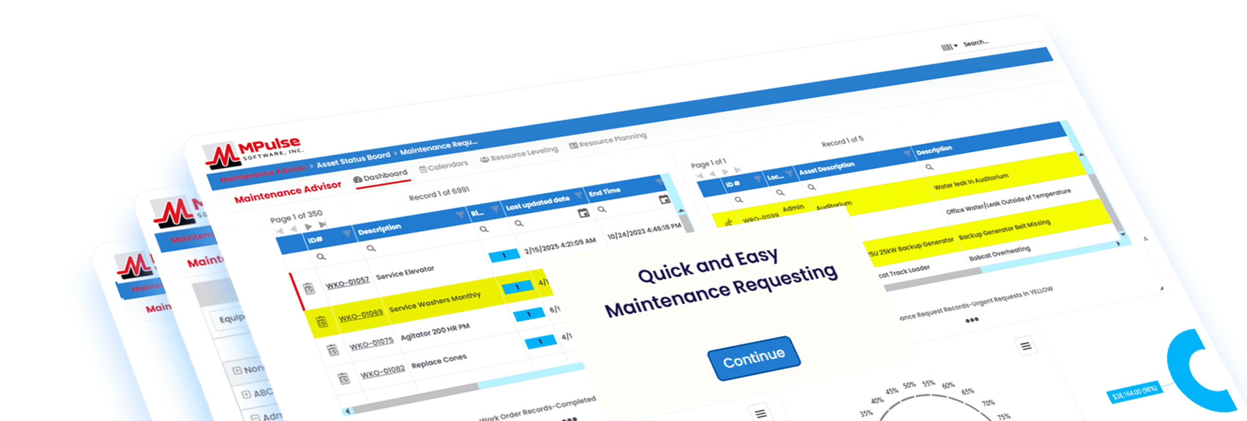 MPulse CMMS helps facilities reduce unplanned downtime and extend asset life with preventive maintenance automation, work order tracking, and intuitive calendar scheduling. Perfect for teams managing HVAC, plumbing, electrical, or fleet operations.