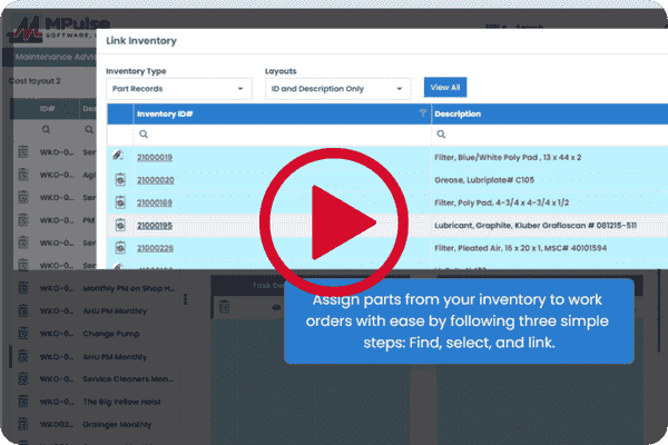 Effective spare parts inventory management is vital for ensuring smooth maintenance operations and minimizing costly disruptions. However, manual inventory tracking and replenishment processes can be time-consuming, error-prone, and result in inefficient stock management. Dealing with stockouts or excess inventory can lead to increased downtime, wasted resources, and reduced productivity. Use the MPulse Spare Parts Inventory Management System to get organized, save time and money, and reduce downtime.